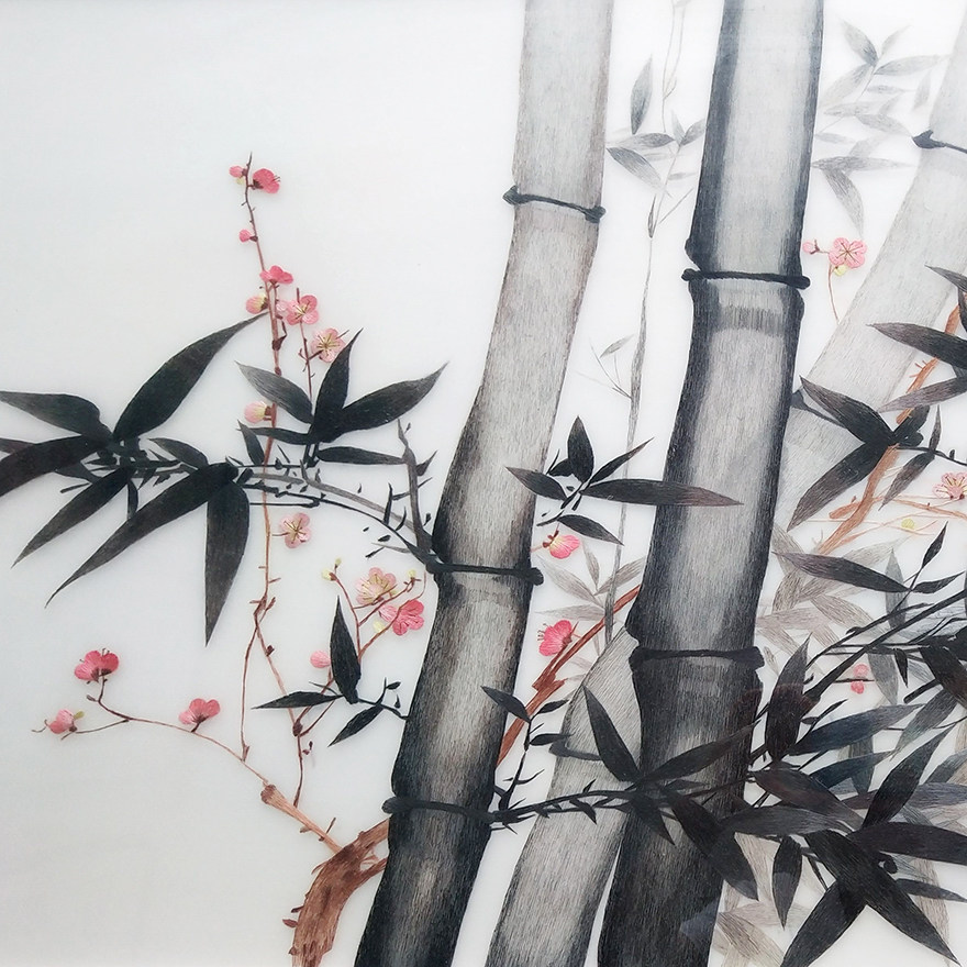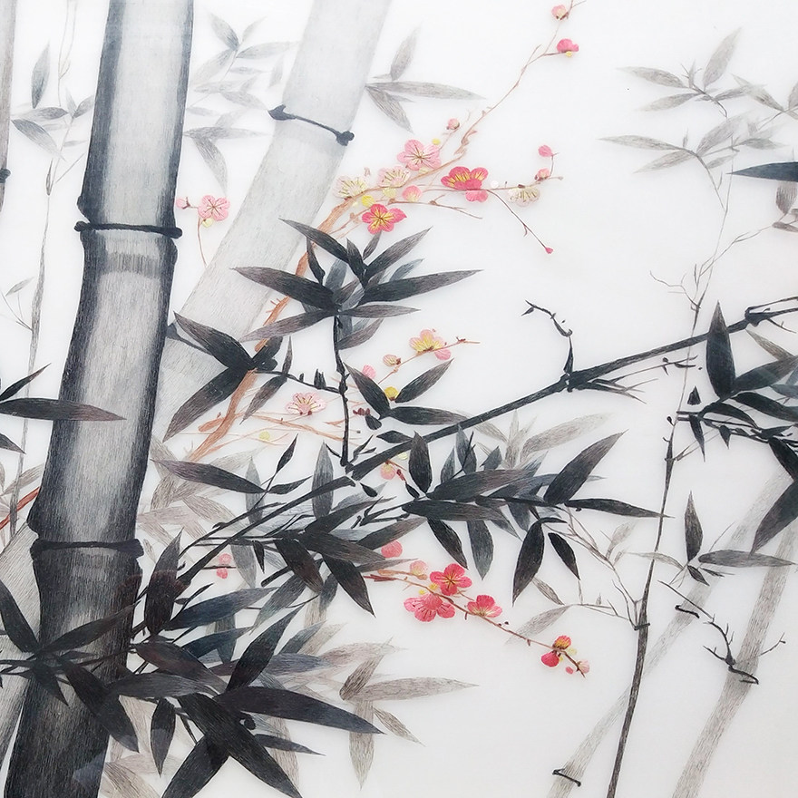 Craft embroidery "bamboo" home decoration hanging painting embroidery silk