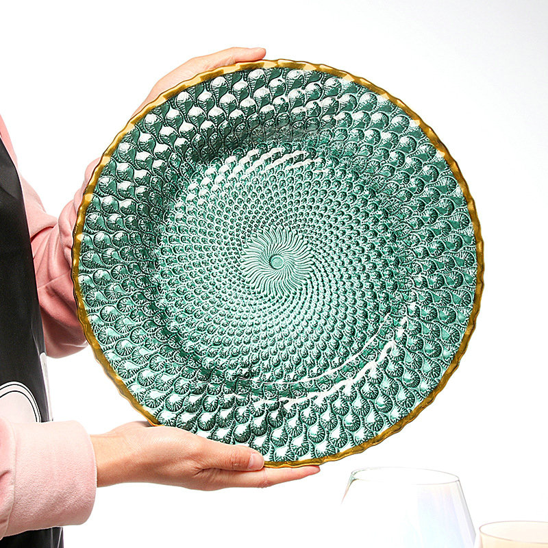 A green peacock disc outside diameter about 32 5cm B Green pineapple disc outer diameter about 32 5cm C Golden Peacock Disc outer diameter approb. 32 5