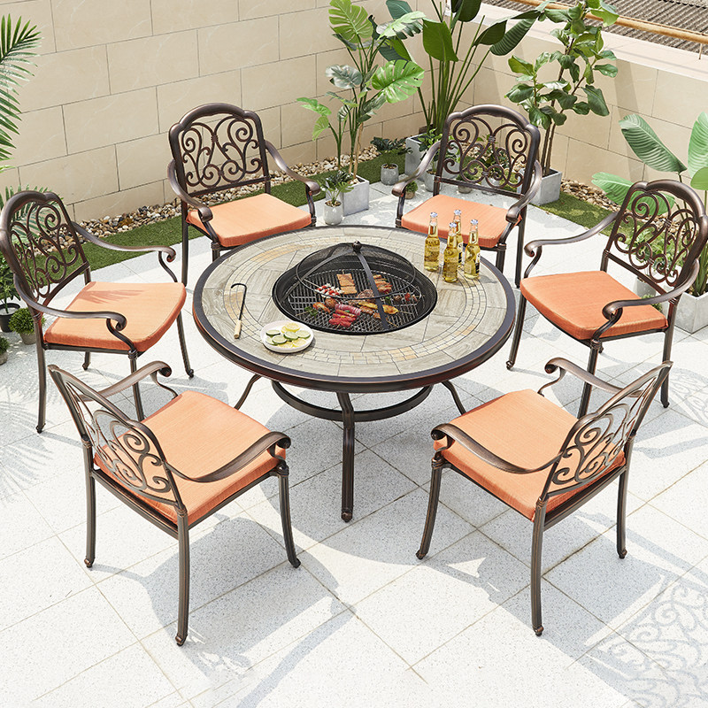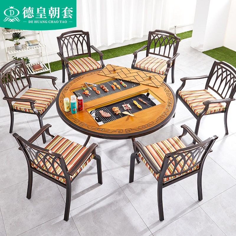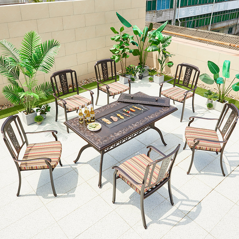 Courtyard Outdoor Terrace Barbecue Table And Chairs Outdoor Open Cast Aluminum Home Commercial Smoke-free Carbon Toasted Barbecue Grill