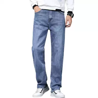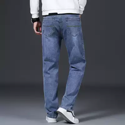 Summer thin loose jeans men's straight casual pants dark middle-aged stretch large size casual men's pants