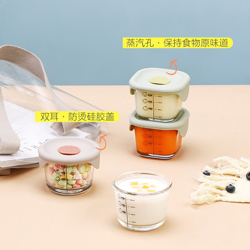 Lekou Le Buckle Food Supplement Box Baby Bowl Can Supplement Bowl Baby 3 Glass Crisp box Food Supplement Storage Box Tableware