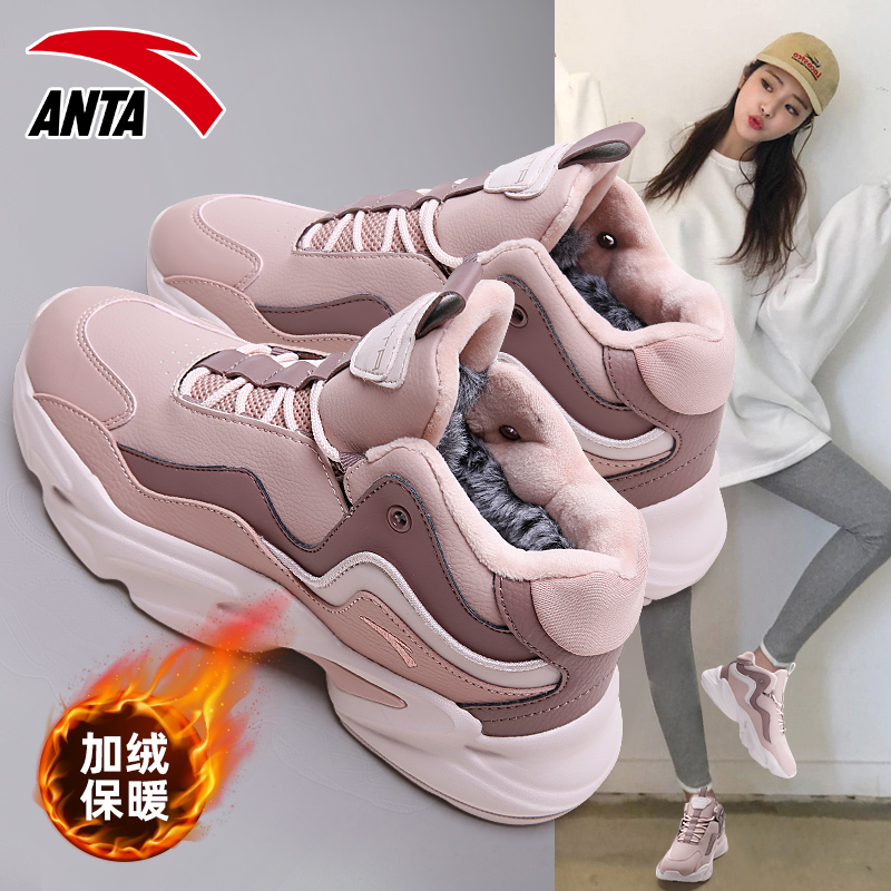 Anta Cotton Shoes Women's Summer Official Web Plus Suede Thickened High Drum Warm Casual Han Edition Snowy Boots Waterproof Sports Shoes