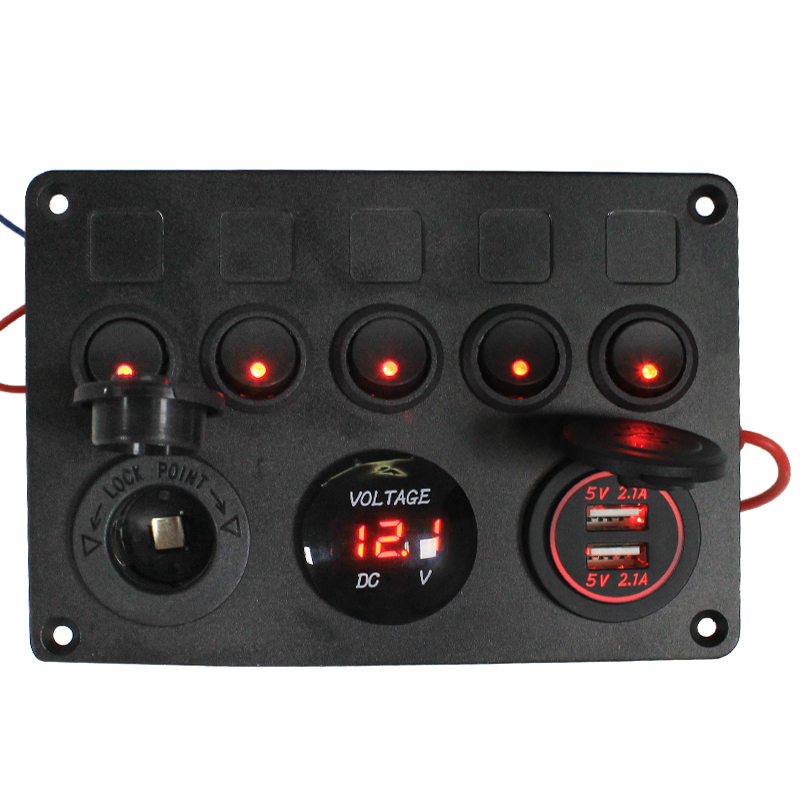Room car control system Mechanical control system 5 - way switch voltage cigarette lighter USB charging interface panel