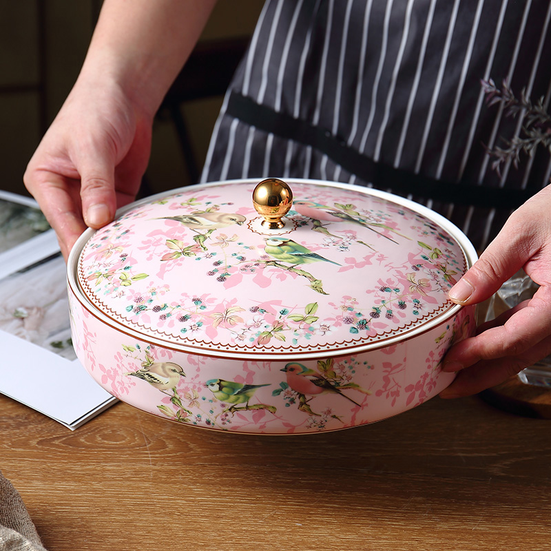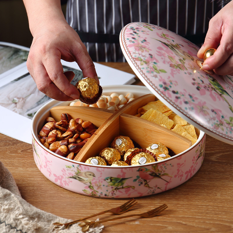 Eurostyle Ceramic Candy Box Creative Home Living Room Tea Table Fruit Pan Snack Melon Sub compartment with lid dried fruit tray