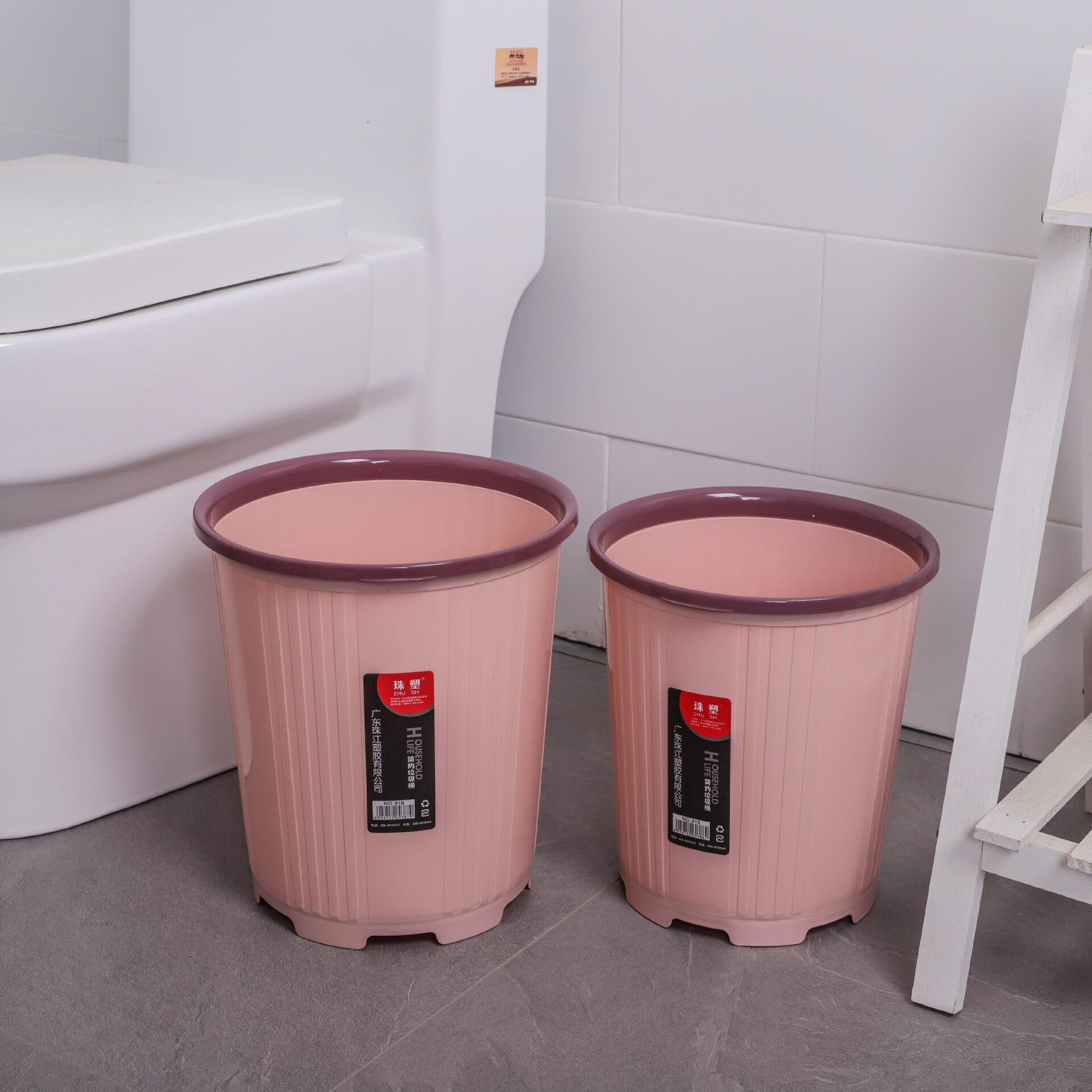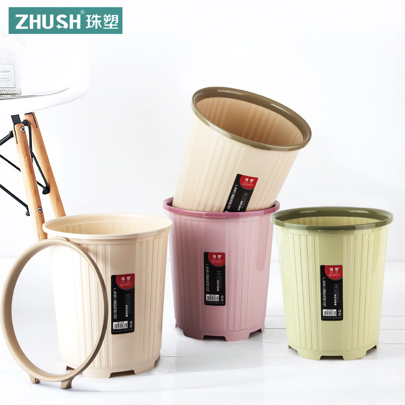 Pearl River plastic trash can round simple study press ring waste paper basket household kitchen large garbage deep small bucket