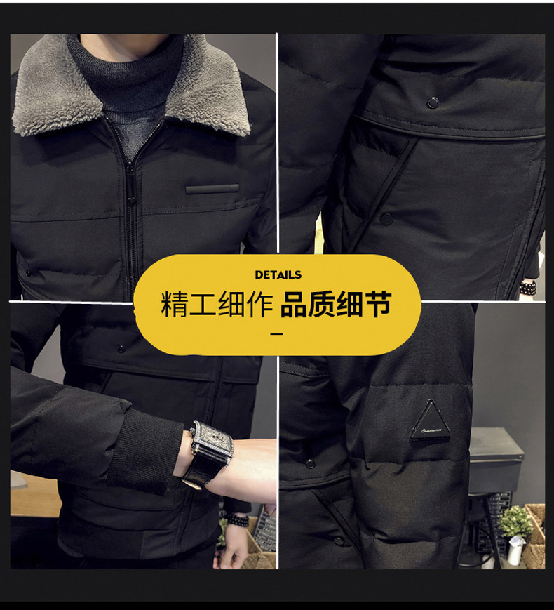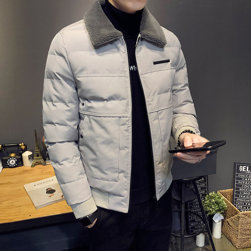 Winter lamb wool collar cotton clothes men sashimi short section anti-chill down cotton clothes handsome and casual cotton padded jacket trendy jacket