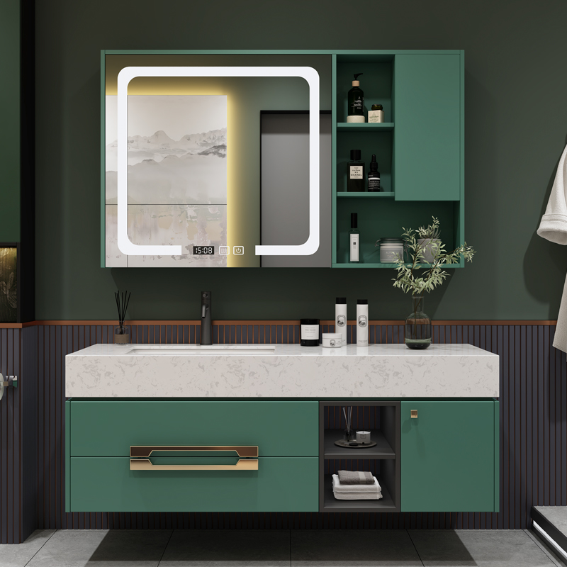 Bathroom cabinet combination Modern simple light luxury rock plate face wash basin cabinet Solid wood intelligent marble bathroom set