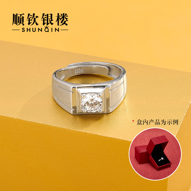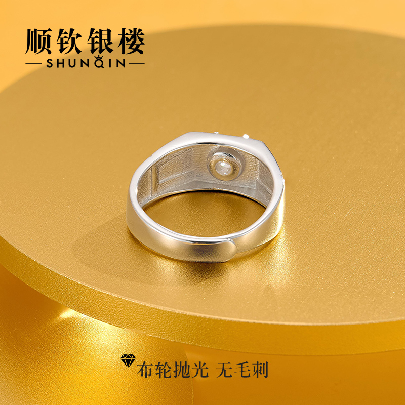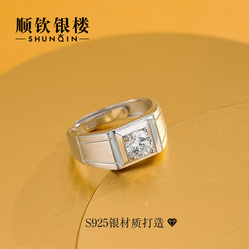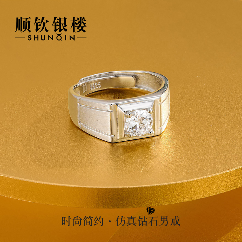 925 Silver Diamond Ring Simulation Ring Men Fashion Wide Silver Ring Personality Silver Ring Men in Japan and Korea Small Tide