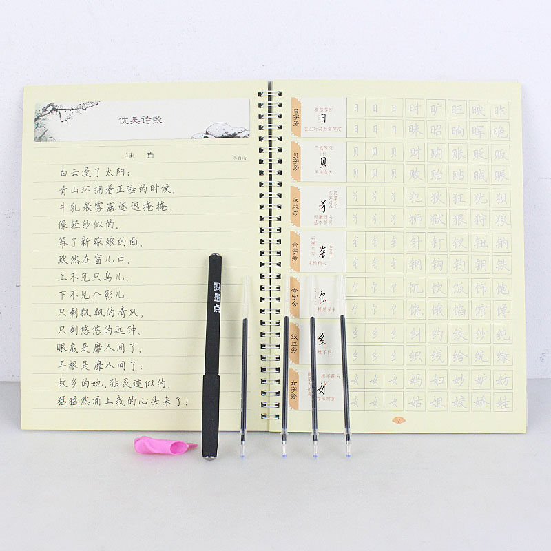 Ink point practice calligraphy Baojing Xiaopeng regular script groove copybook entry practice commonly used 2500 words Tang poetry and Song poetry primary school students practice calligraphy pen practice calligraphy hard pen practice calligraphy elimination pen disappearing refill pen holder