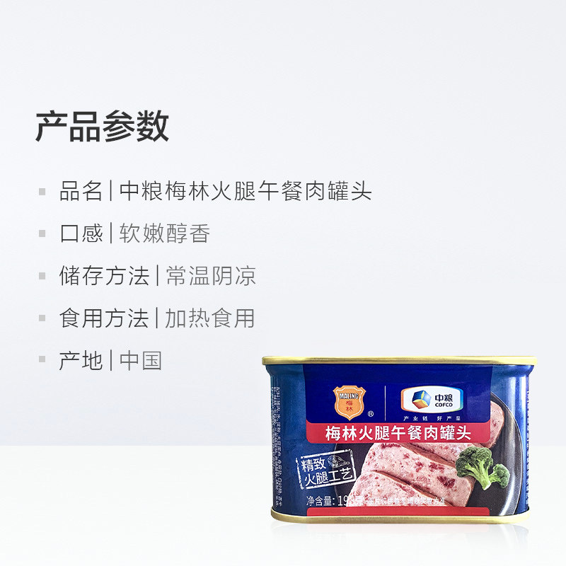 COFCO Meilin Ham Luncheon Meat Canned 198g Convenience Fast Food Snail Powder Pork Hot Pot Instant Noodles Partner Breakfast
