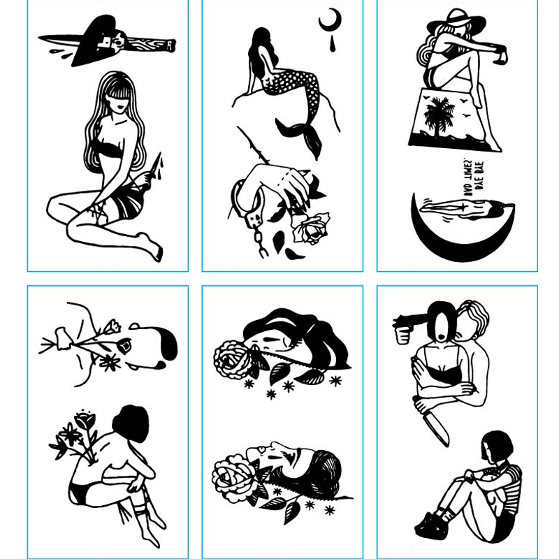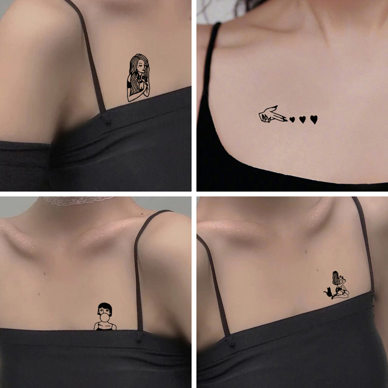 Tattoo Sticker Dark Black Ensemble Depraved Sting Green Lock Bone Small Pattern Waterproof Female Persistent Korea Emulation Tide not permanent 1 year