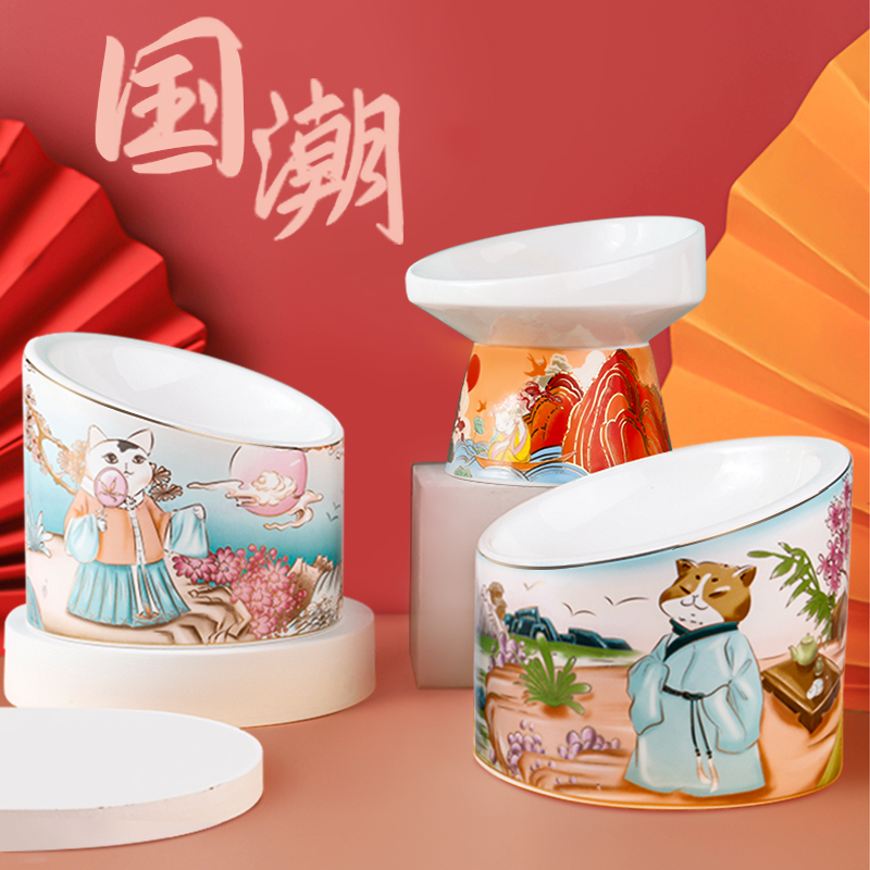 Sheng Shiguo Wave High Foot Pitched Kitty Cat Ceramic Bowl
