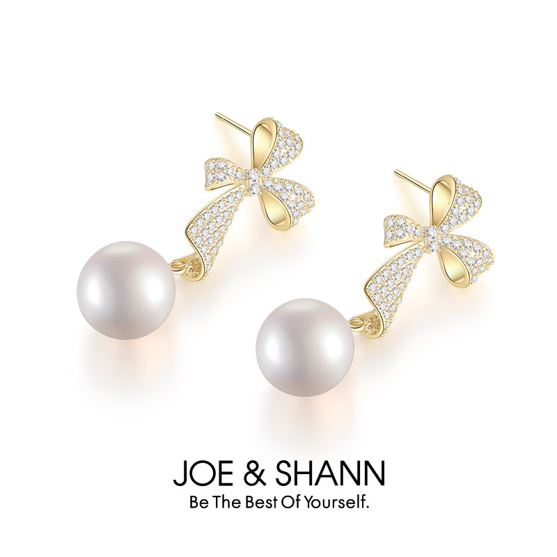 Butterfly knot pearl earrings (white) butterfly knot pearl earrings (champagne gold)