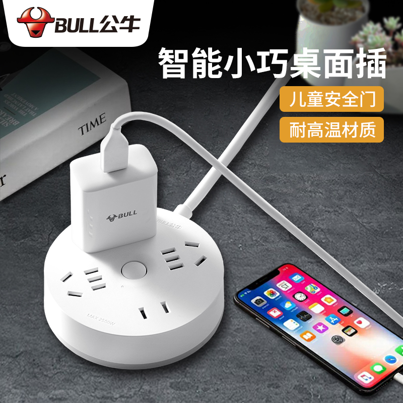 Bull round socket panel porous household plug row USB row plug dormitory student with line disc delay long line