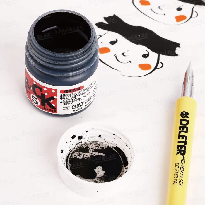 Japan Imports DELETER Hearty Cat Cartoon Ink Black White 30ml Watercolor Pen Fountain Pen