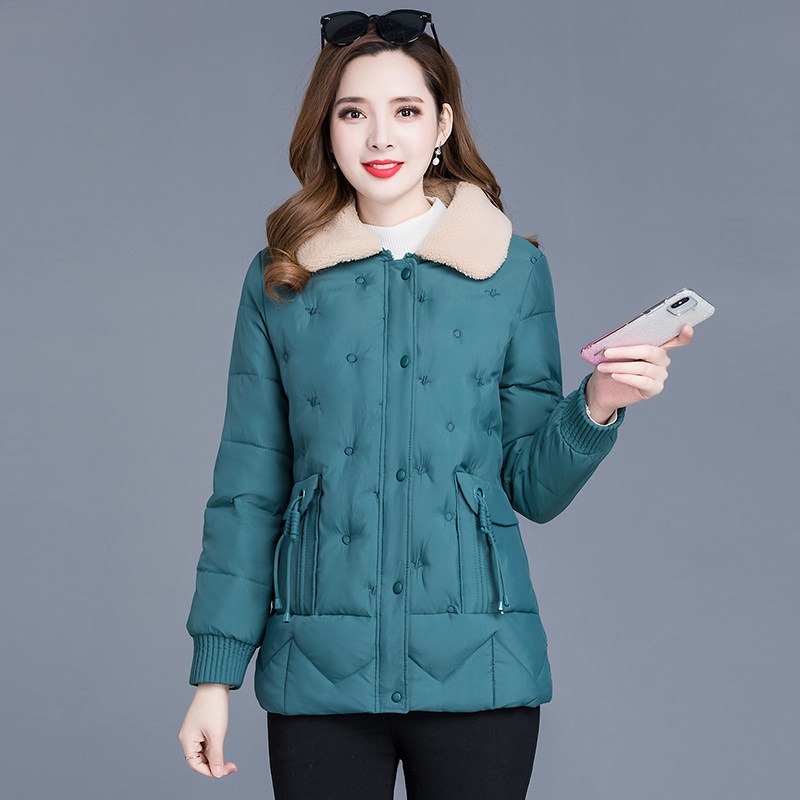 Lamb wool collar cotton coat women's short and light 2020 winter new fashion Korean version of down cotton clothing quilted jacket