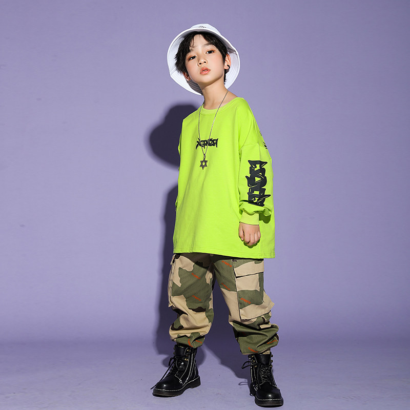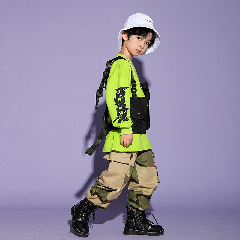 Boys' hip-hop suit children's long-sleeved loose camouflage pants tide clothing children's handsome hiphop hip-hop performance clothing