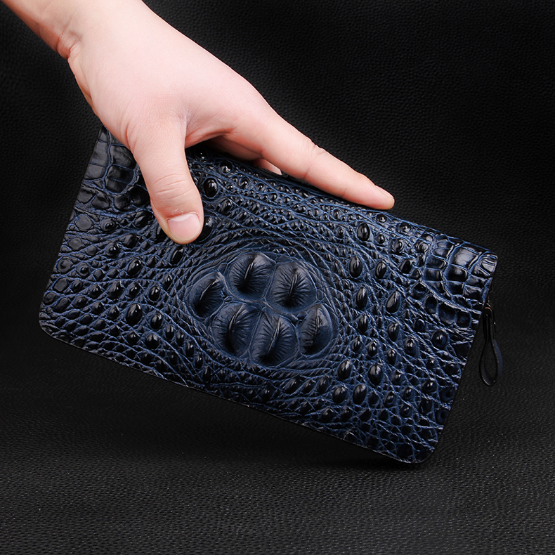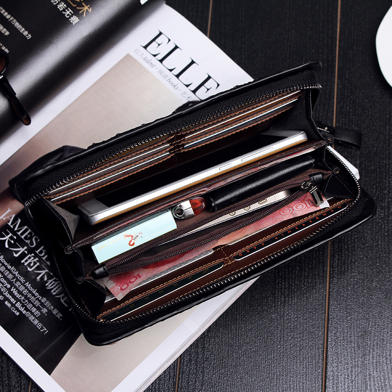 Crocodile textured handbag men and women genuine leather long prints with purse money clips Classic Business Bull Leather Hand bag Youth