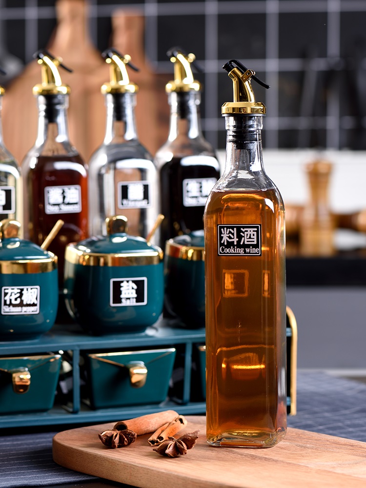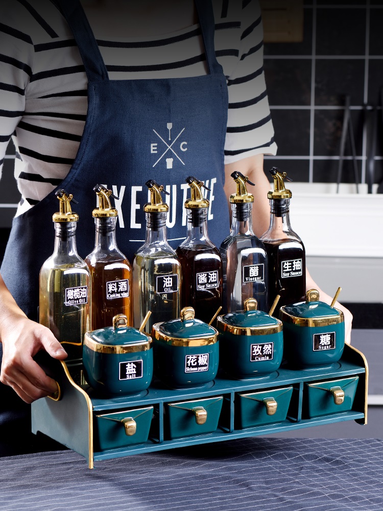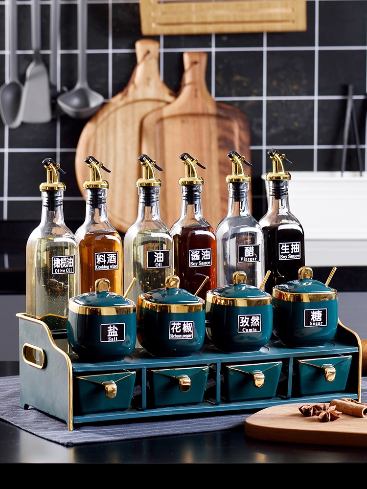 Ceramic seasoning box set household seasoning jar seasoning rack oil bottle pot salt jar glass kitchen supplies rack