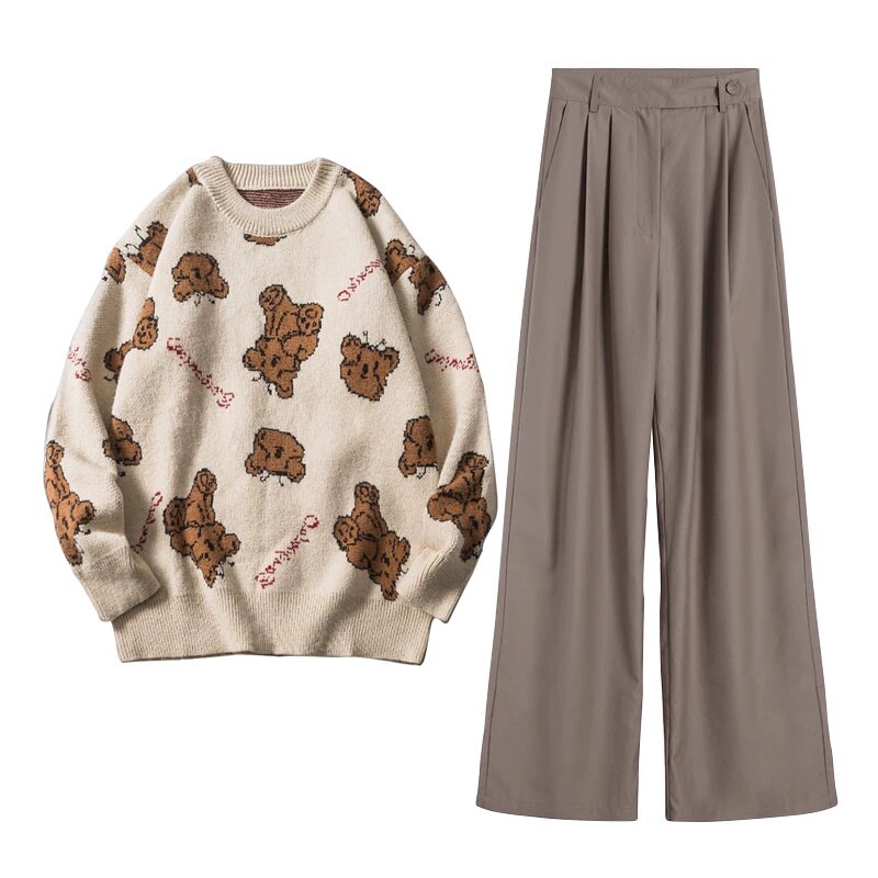 Single sweater (early winter dress with a complete set of tea gas set Winter tea system with two sets of salt lined winter suit, milk dress wearing fried street tenderly wearing Korean drama skirt) single pants