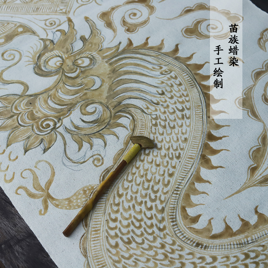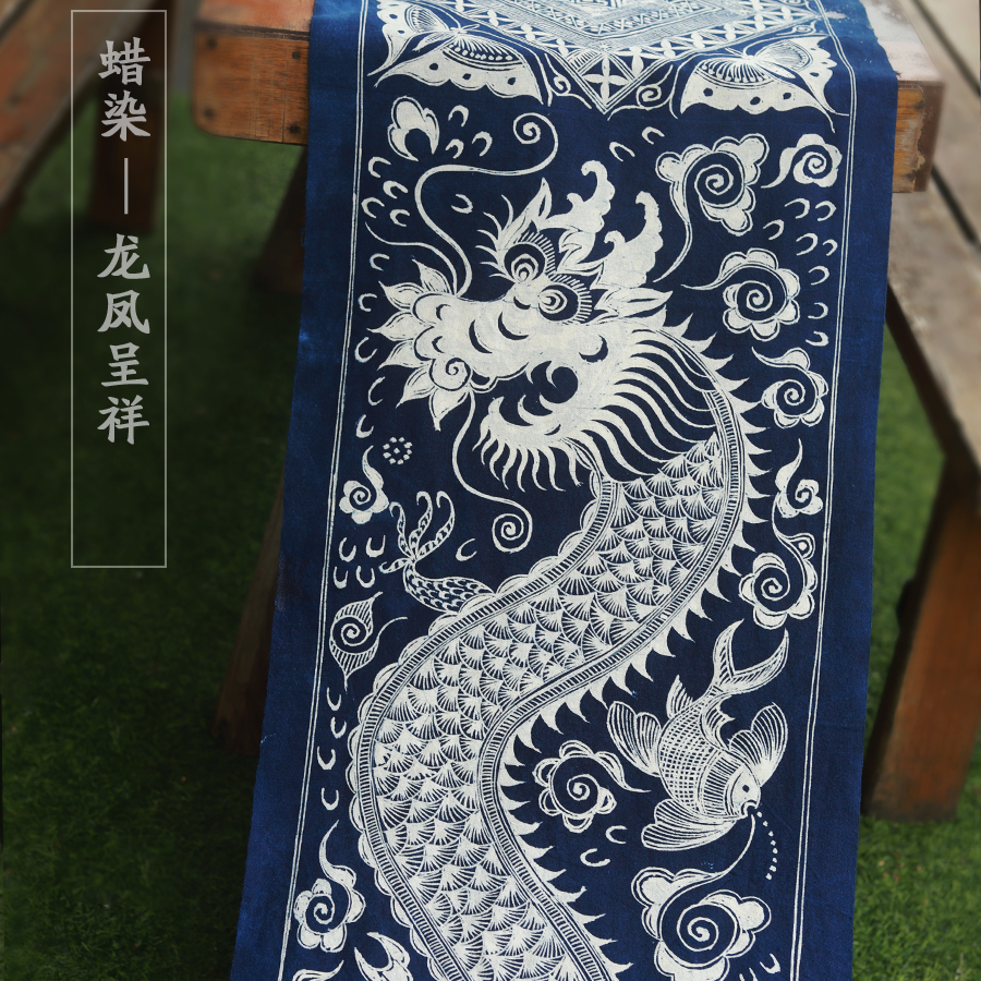 Shuijiafang Miao ethnic batik Guizhou handicrafts grass and wood dyeing blue dyeing dragon phoenix xiang table flag tea party home hanging painting