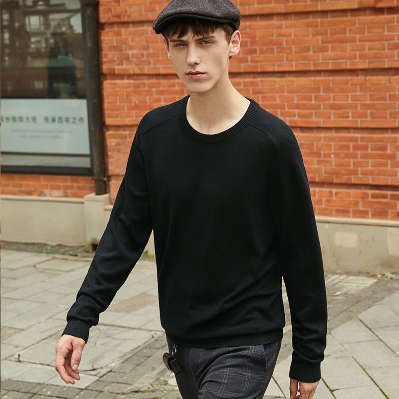 Mr Bu casual long-sleeved sweater men's winter simple basic solid color knitted sweater KT01003