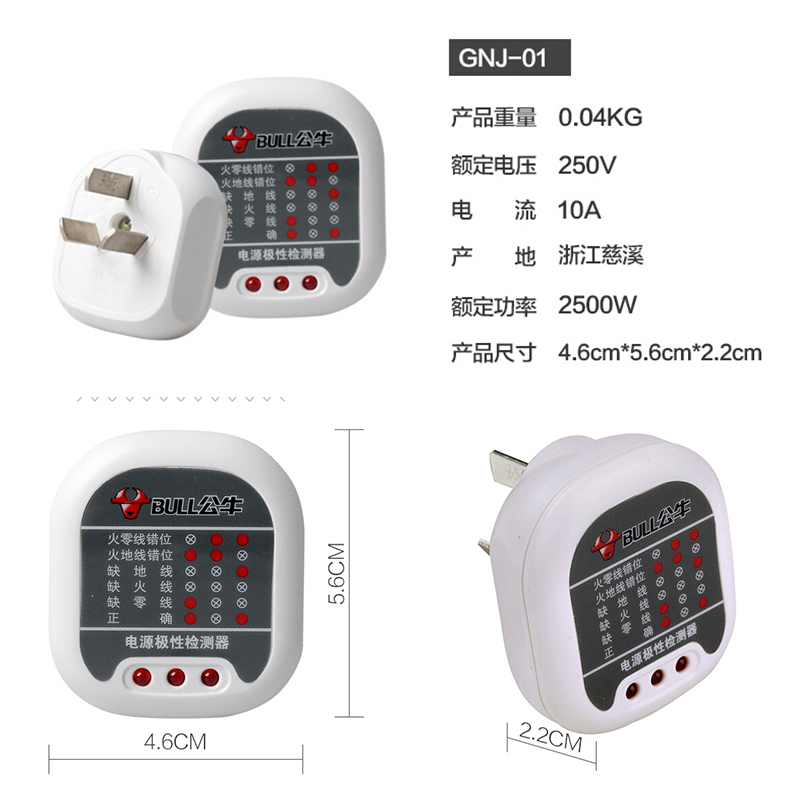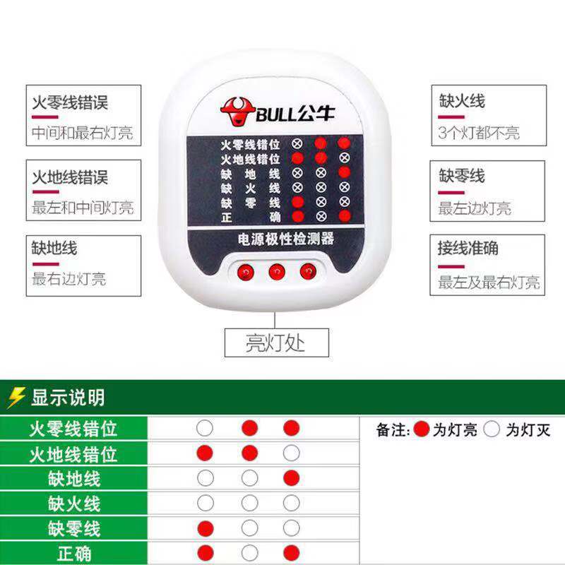 Bull power polarity detector socket line electroscope zero ground test plug phase instrument