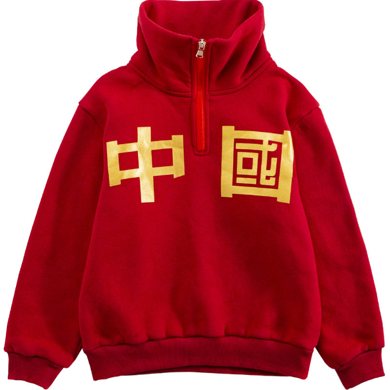 Boys plus fleece sweatshirt autumn winter 2020 new red winter clothes children's clothes plus thick foreign gas tops in the big boy tide