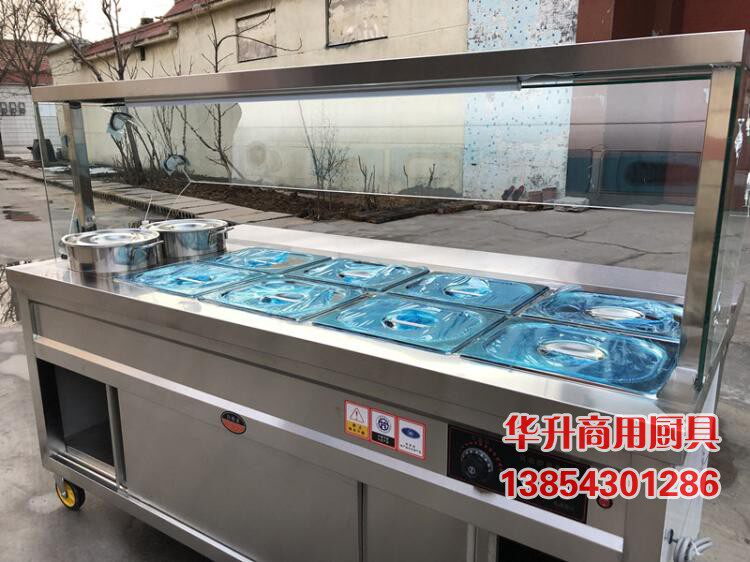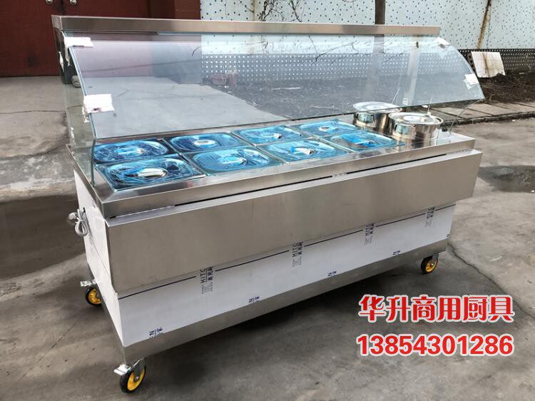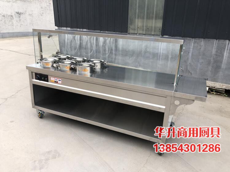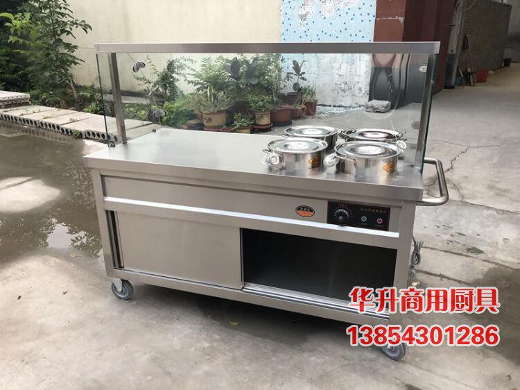 Commercial Electric Heating Insulated Porridge Car Glass Cover Breakfast Porridge Desk Hotel Soup Vegetable Congee For Mobile Sales and Dining Trolley