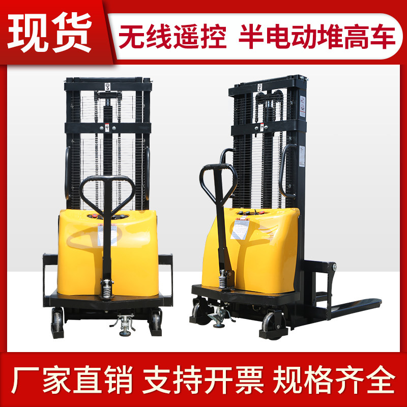 Semi-electric forklift 1 ton 2 tons small automatic loading and unloading truck hydraulic lifting stacker hydraulic stacker truck remote control version