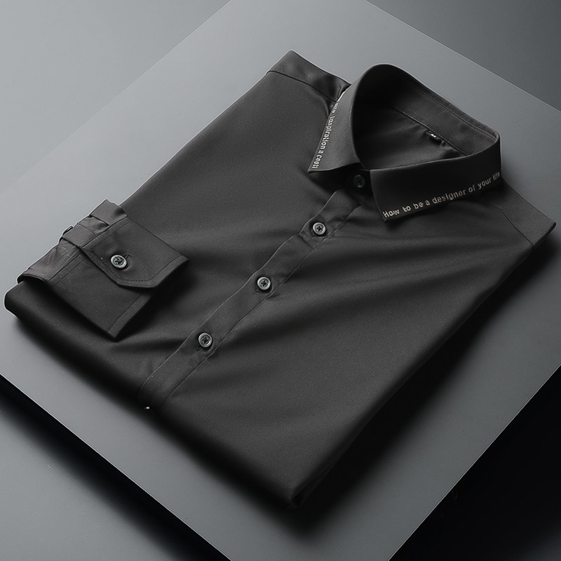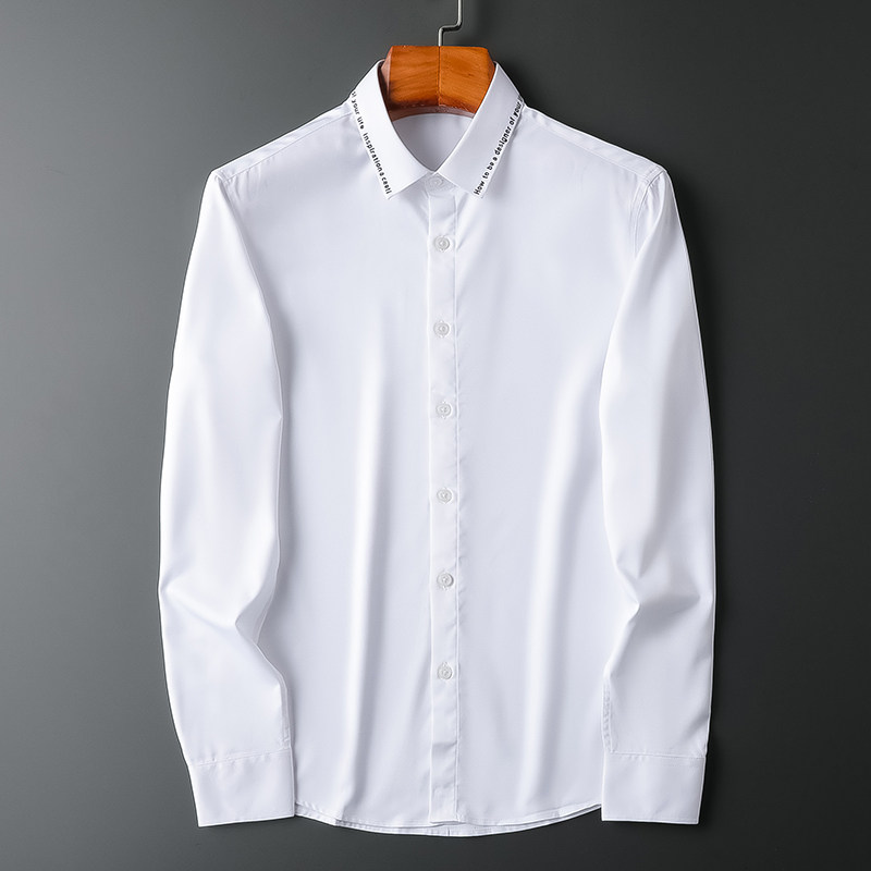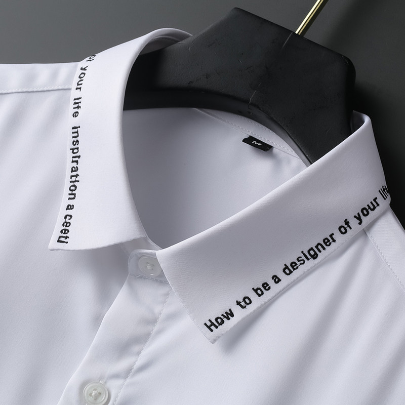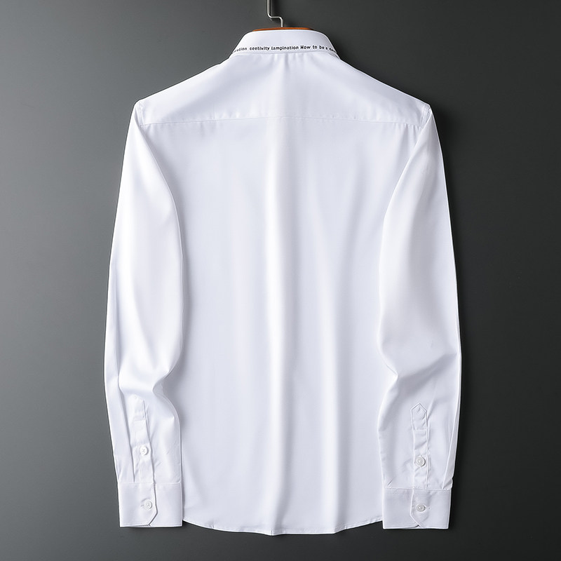 2021 autumn winter embroidery shirt male long sleeve Korean version trendy right fit inch shirt light business professional men's shirt