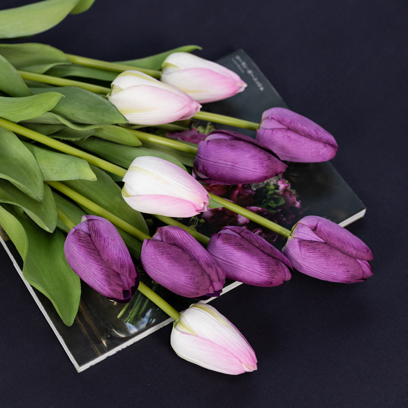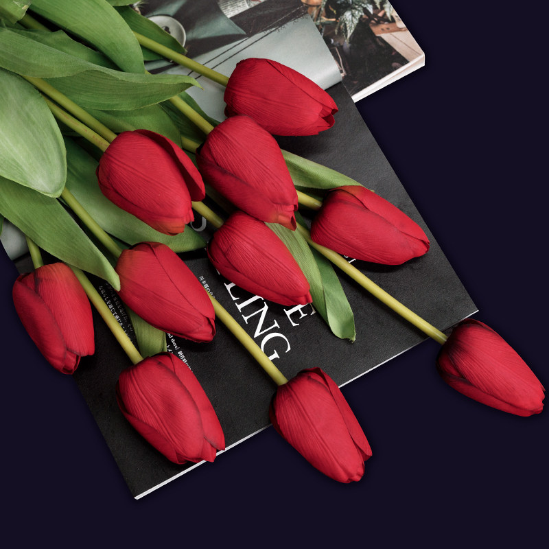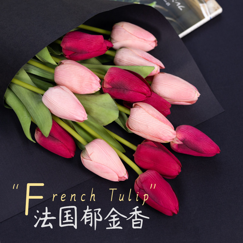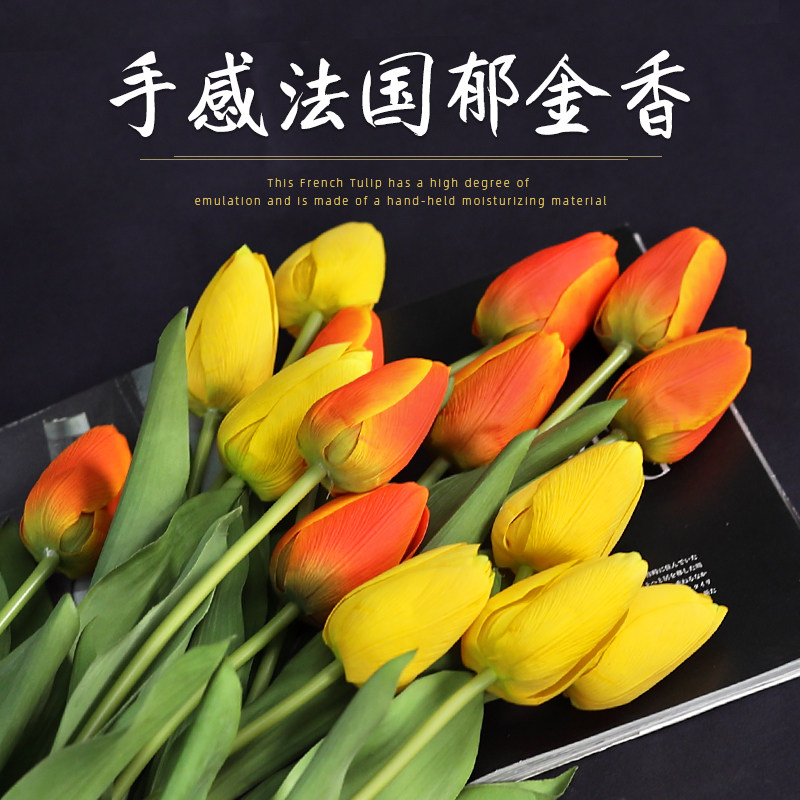Hand Feel Moisturizing Tulip Emulation Flowers High-end Pendulum Flowers Flower Flower Arrangement Plastic Flowers Living-room Furnishing Floral Swing Pieces