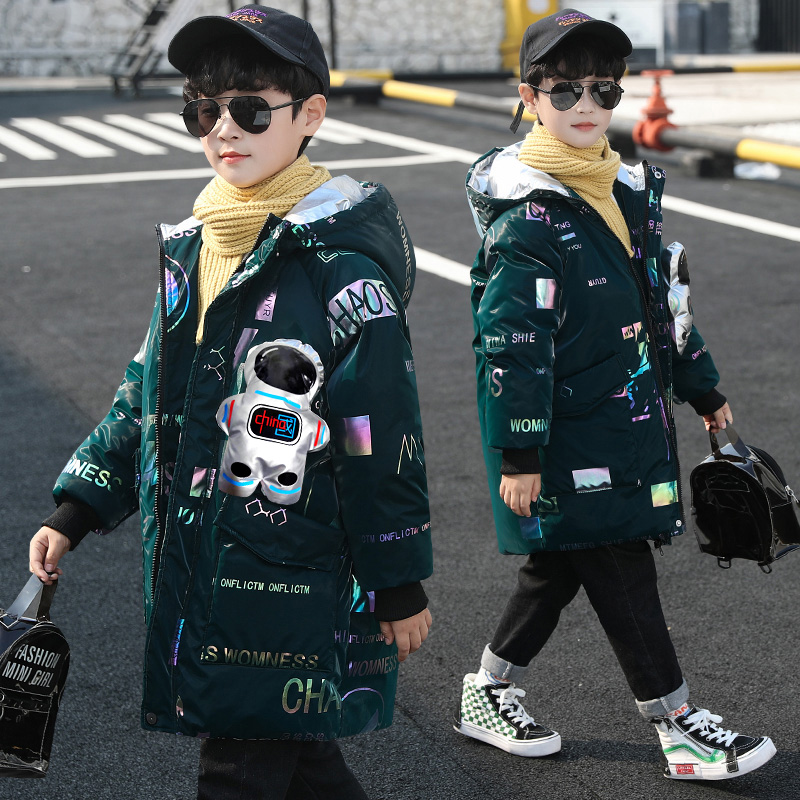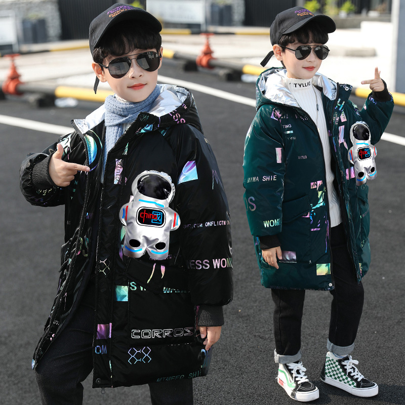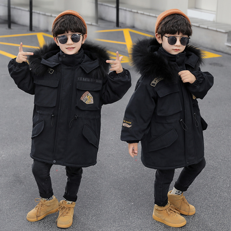 Boys' cotton clothing winter clothing 2021 new medium and large children's clothing medium and long version plus velvet thickening pie to overcome cotton coat jacket