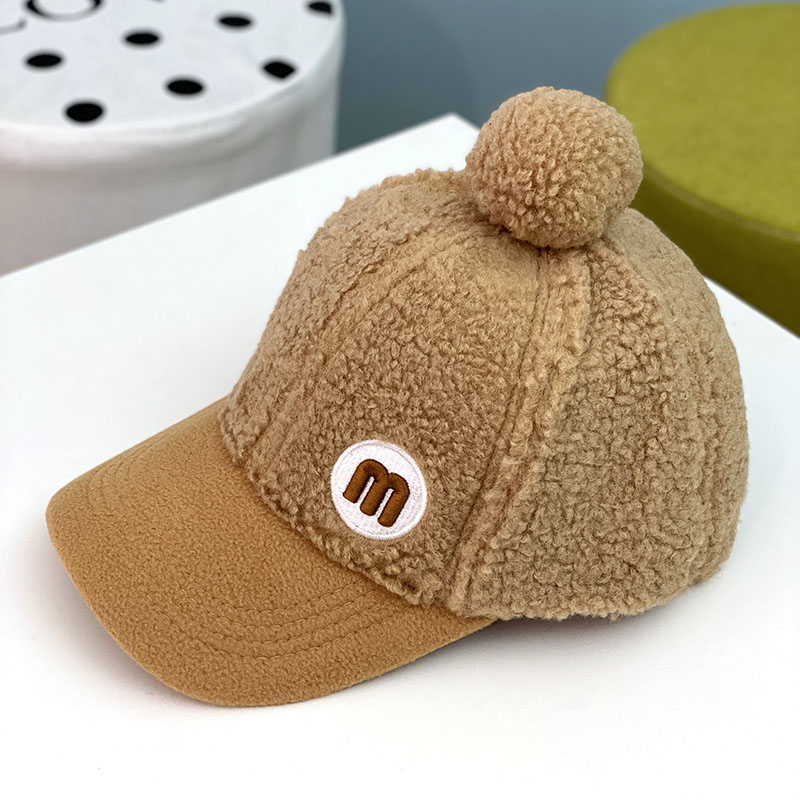 Autumn and winter children's letter M hair ball cap Korean version of the trendy fashion boy lamb velvet hat girls travel to keep warm