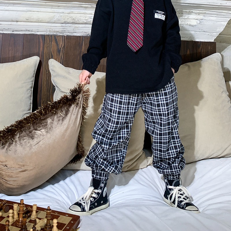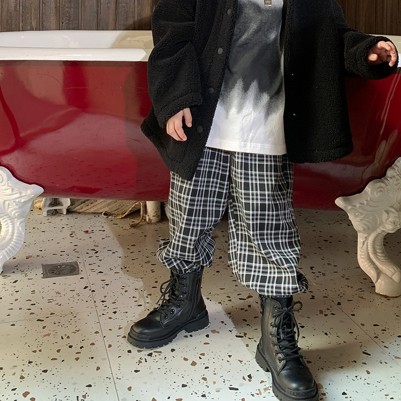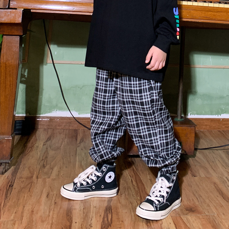 High sweet pear vortices original children black and white plaid bunches pants female boy Spring and autumn style Elegant Trendy Pants Tide