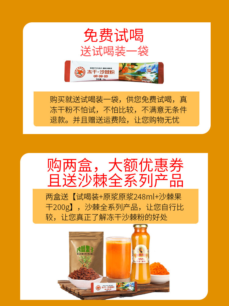 Xinjiang Qianzheng Liangliang Freeze-dried Buckthorn Powder Frozen Powder Pure Powder 10g * 30 bags without extracting sea buckthorn oil