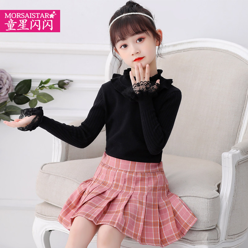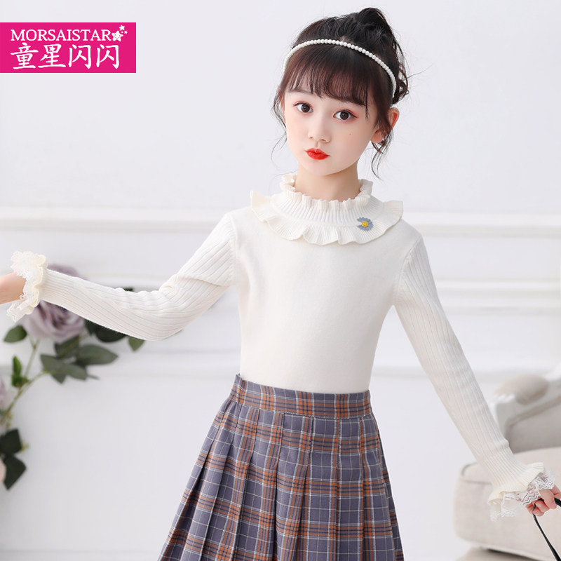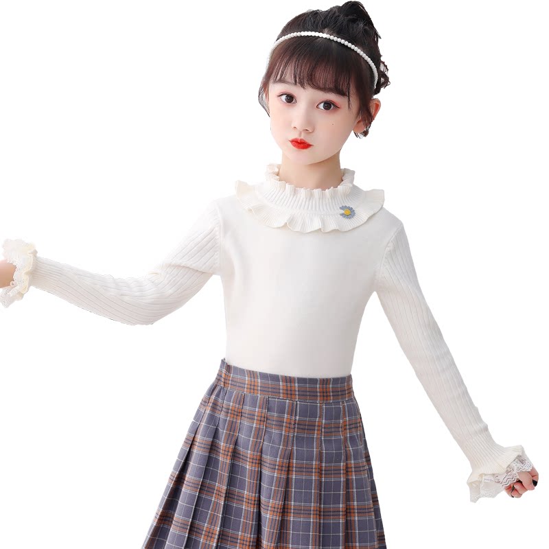 Girl playing a white sweater baby knitting sweater sweater and winter Korean long sleeve coat sweater little girl