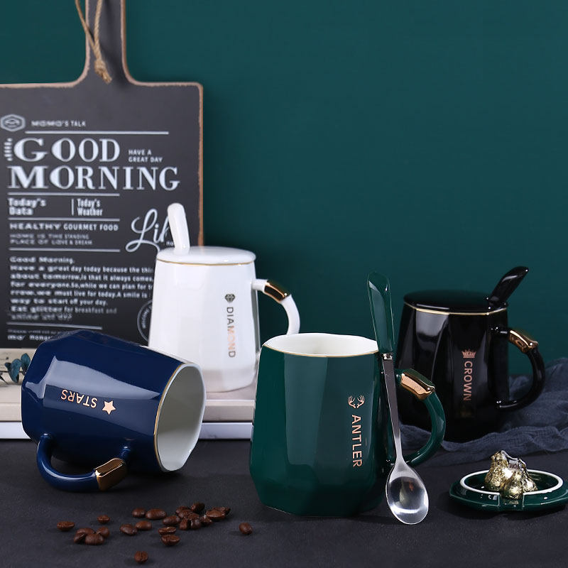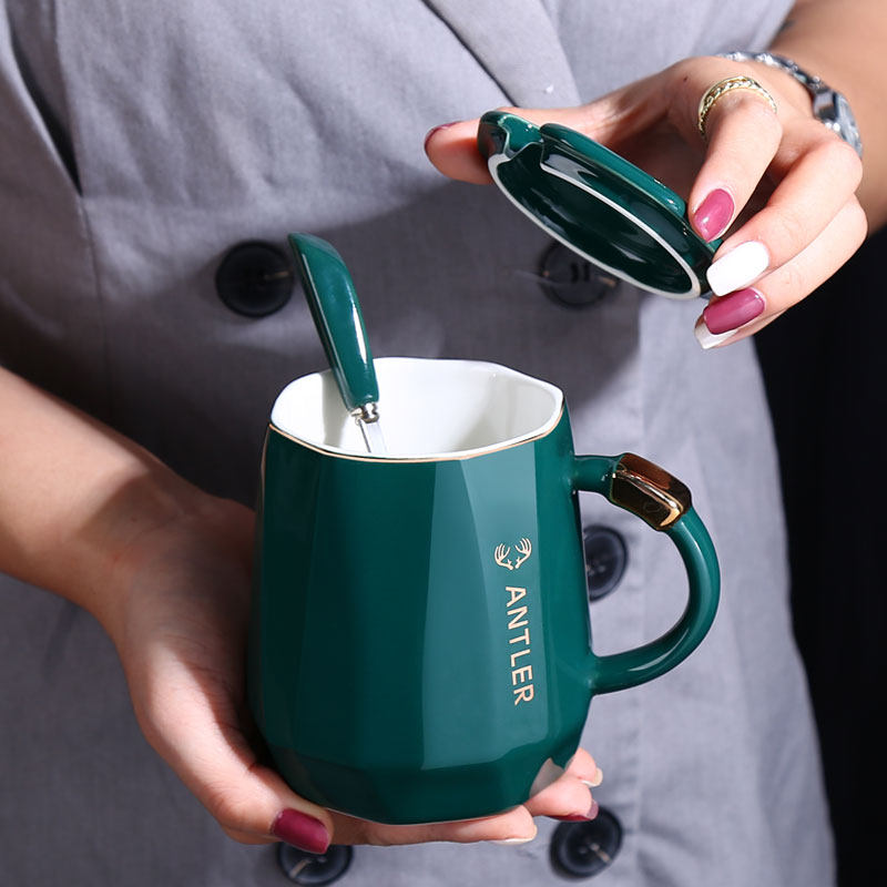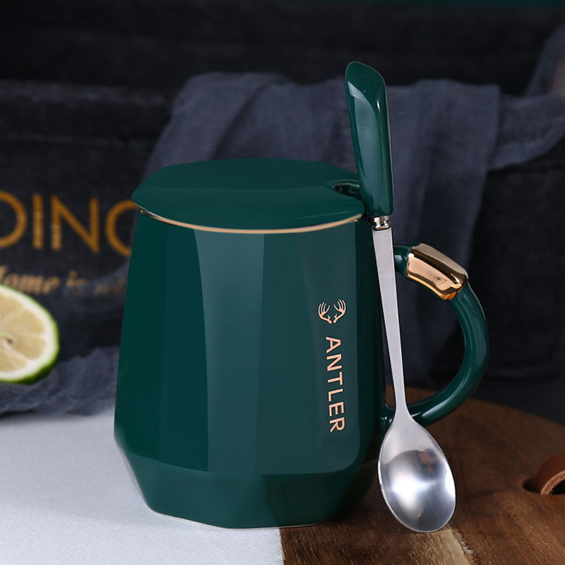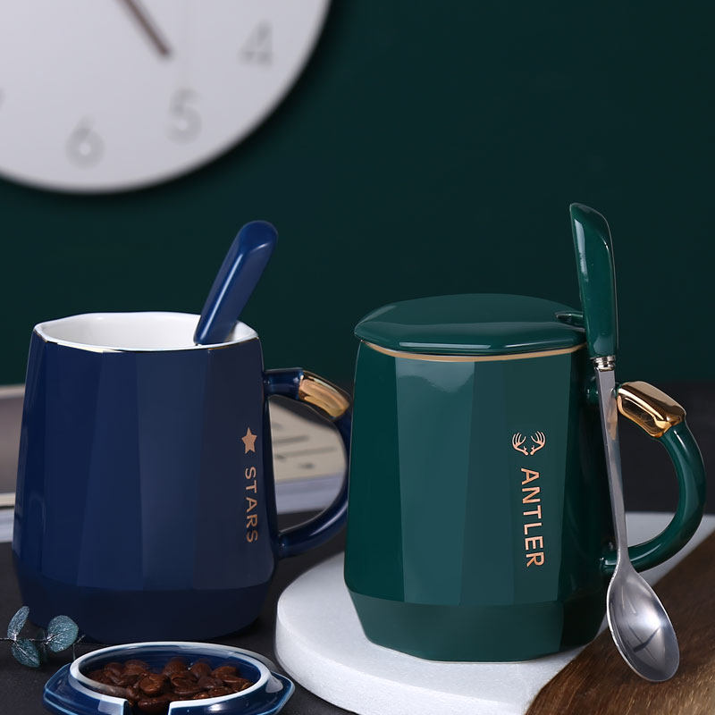 Coffee Cup Home Minimalist Cup Ceramic Cup With Lid Spoon Creative Personality Trend Office Couple Water Glass Female