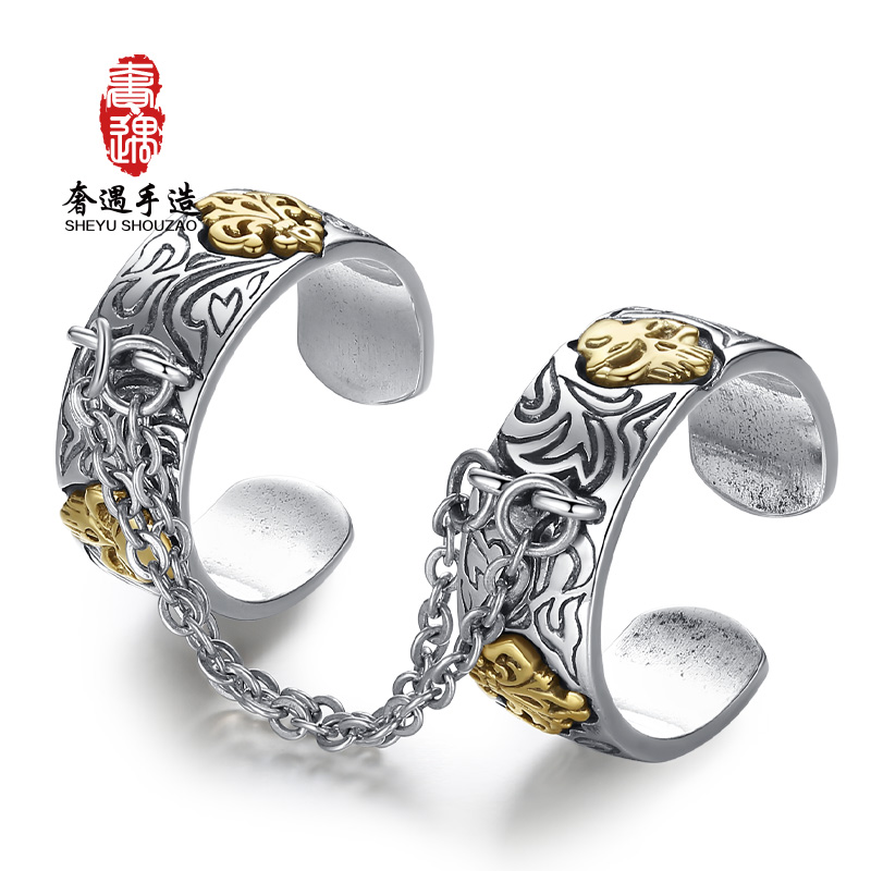 Luxury retro personality double silver belt ring men female lover gift silver ring ring ring ring ring Nightclub skeleton accessories