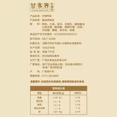 Ganjiajie lemon duck 1950g gift box Guangxi specialty Nanning intangible cultural heritage cuisine braised cooked food snacks