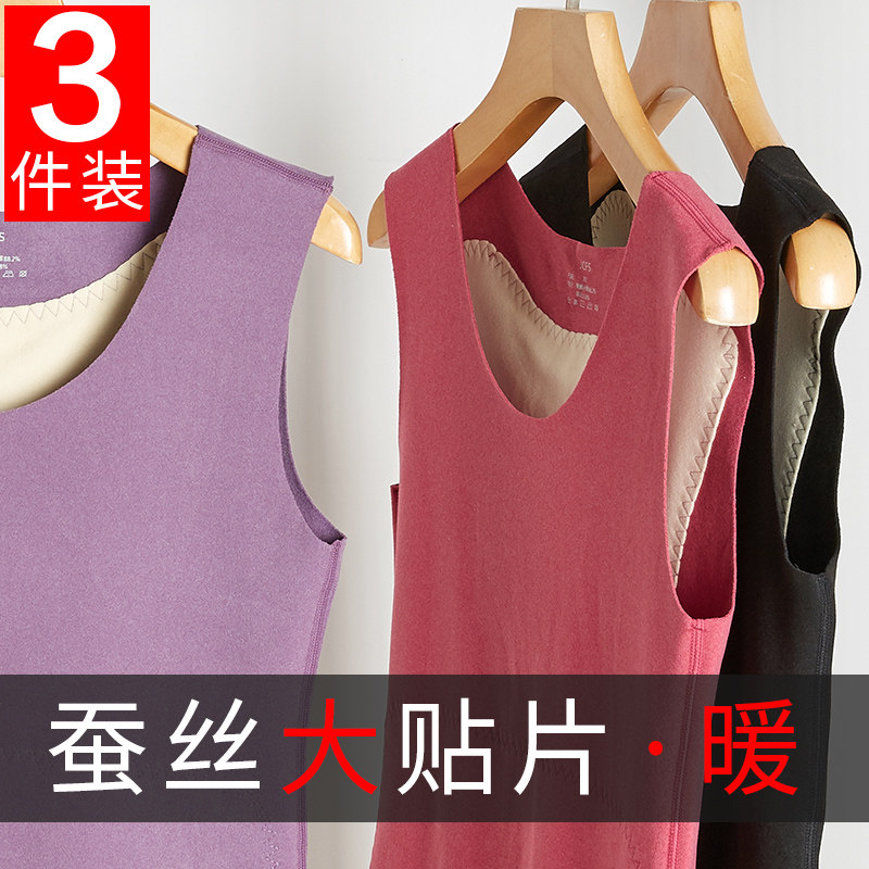 Black Silk Patch Warm Vest Woman Almond Silk Patches Warm Vest Woman Cherry Pink Silk Patch Warm Vest Woman Light Purple Silk Patches Warm Vest Women's Rose Red Silk Patch Warm Vest Woman