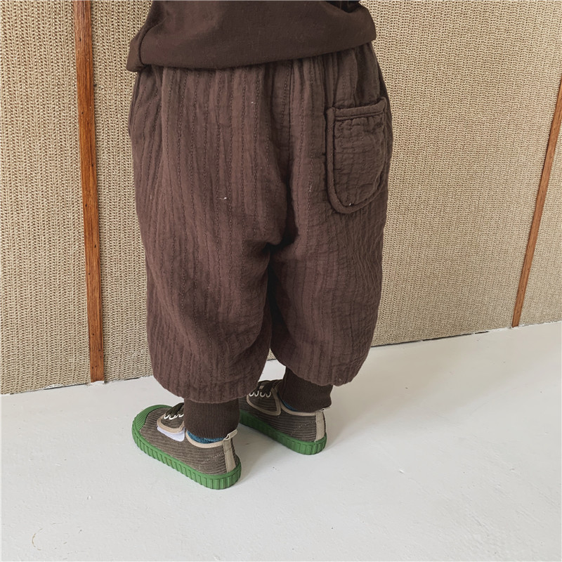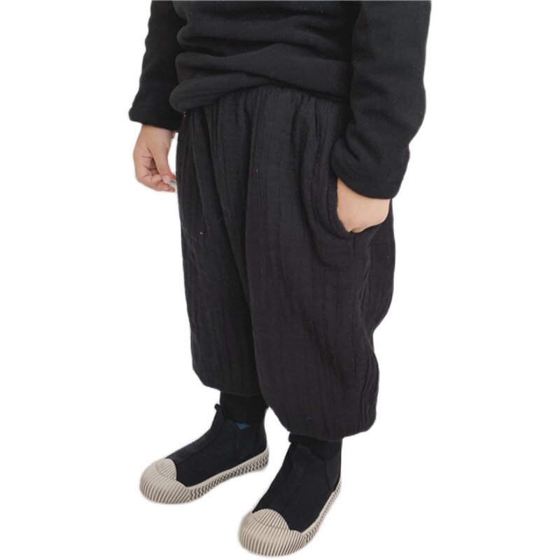 Boy's new winter dress plus suede plus cotton wide leg pants in Boys Mori Thickened Warm Light Cage Pants Baby Bungling Pants