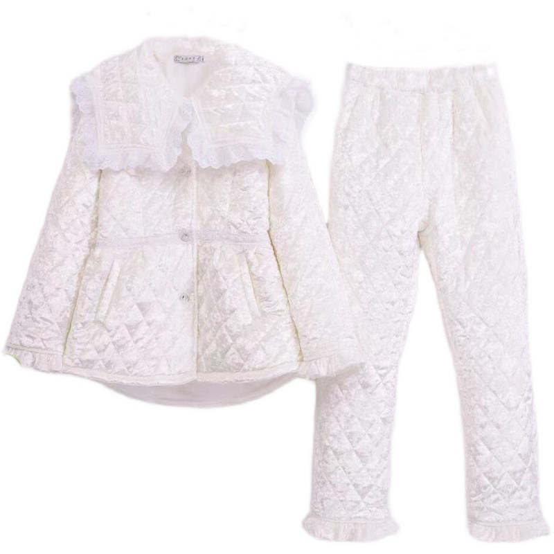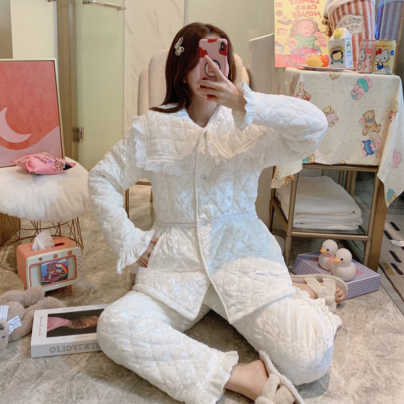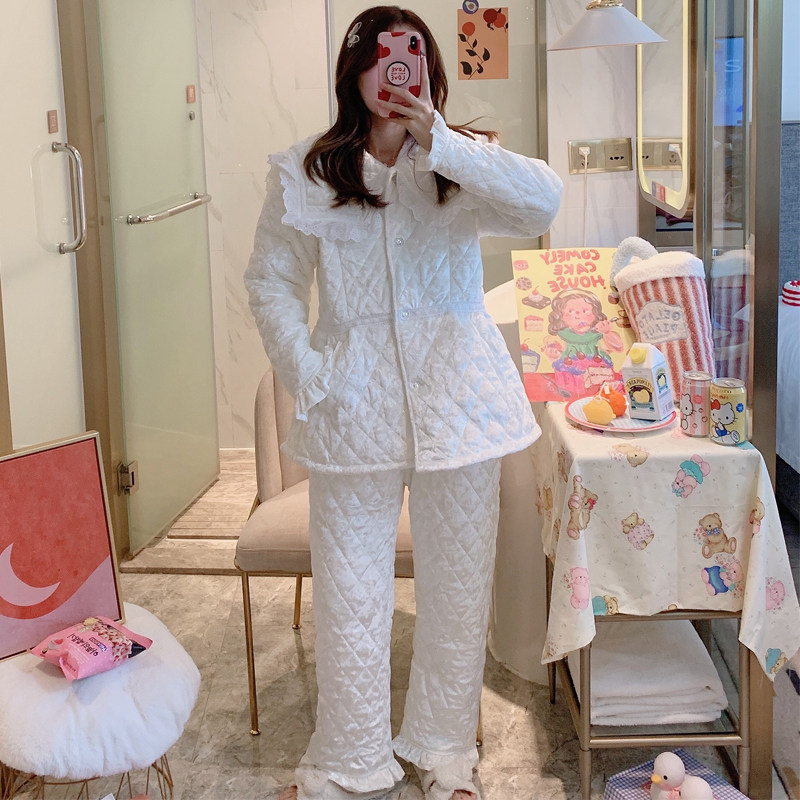 Korean version winter three-layer quilted gold silk pajamas women's padded jacket gold diamond coral fleece thickened warm princess style home clothes