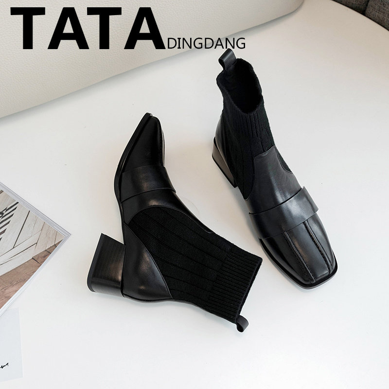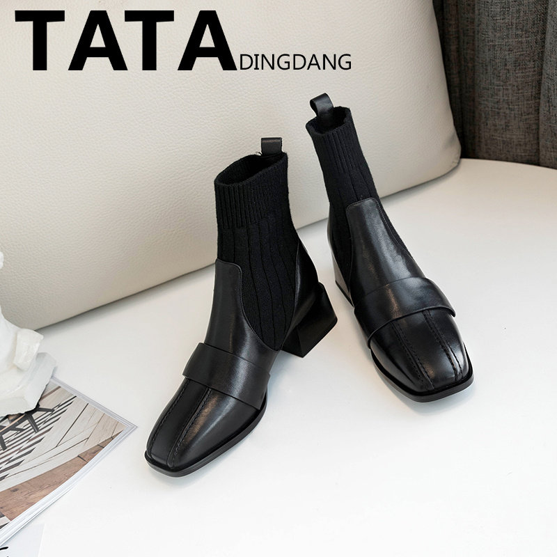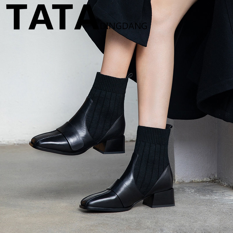 Tata Dingdang her shoes are leather boots female winter fragrance thin socks boots rough and Martin boots