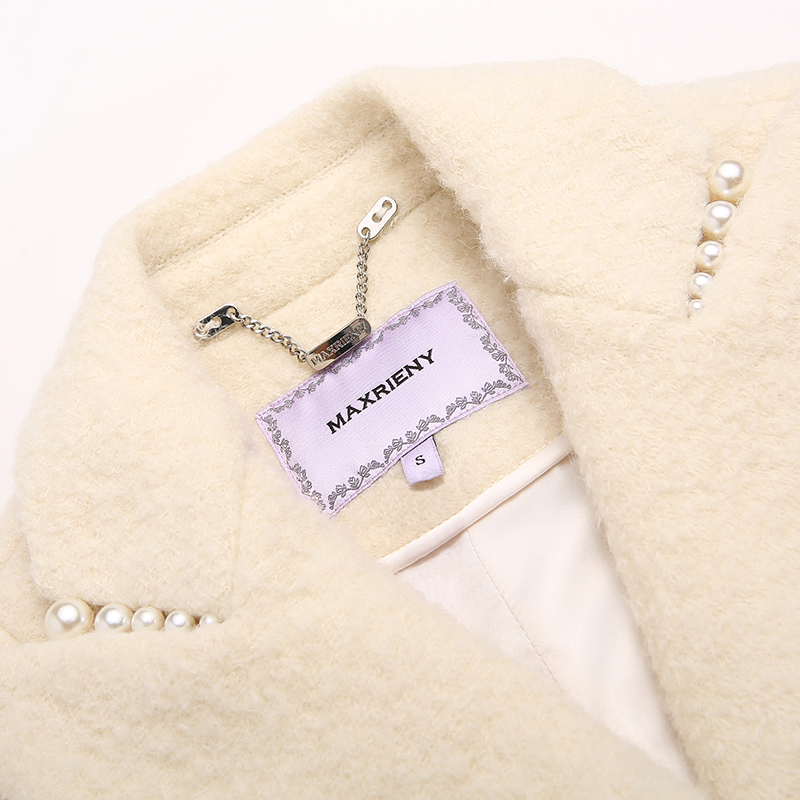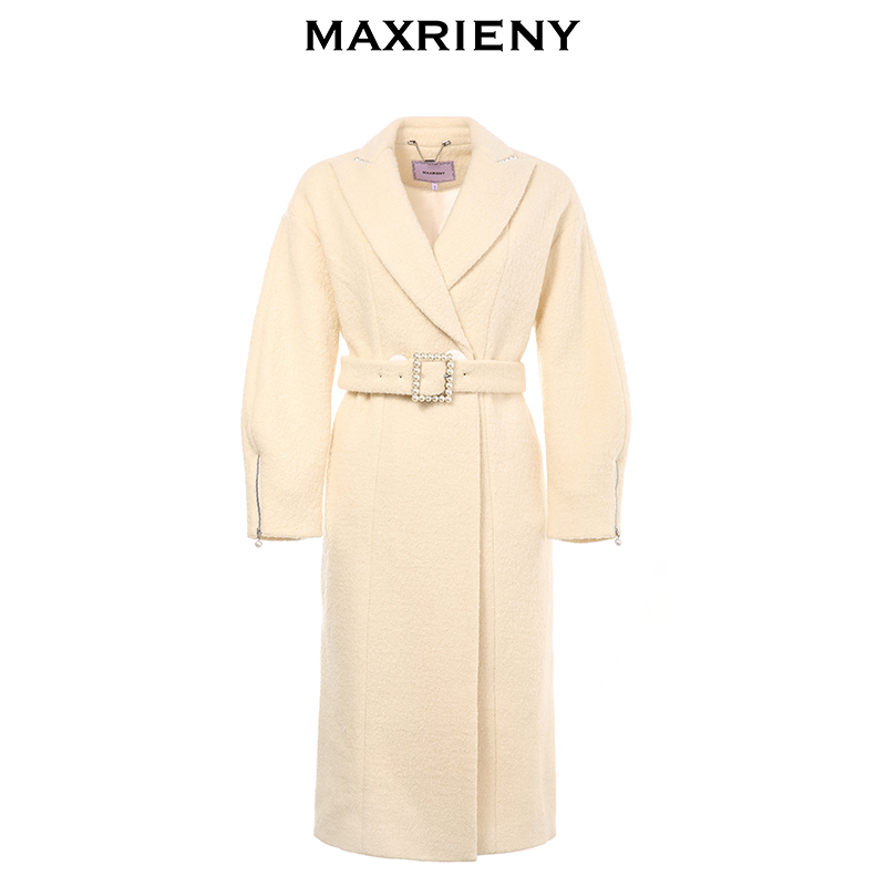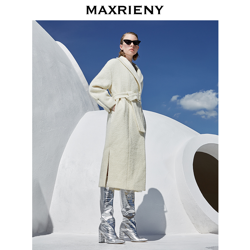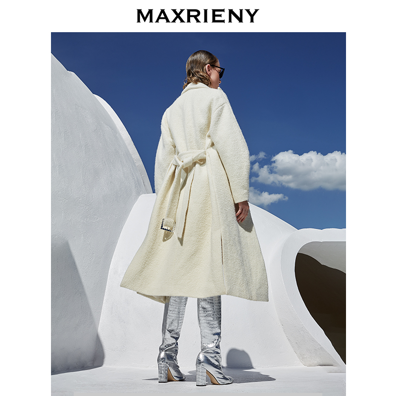 MAXRIENY 2020 winter new vintage beige sheep hair lace-up half open collar straight medium and long version of the coat female