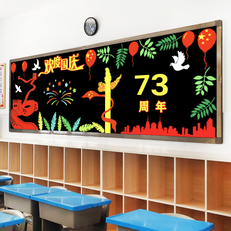 Welcome to the National Day Festival children's heart to the party blackboard decoration wall to the primary and secondary school classroom layout the classroom cultural theme wall