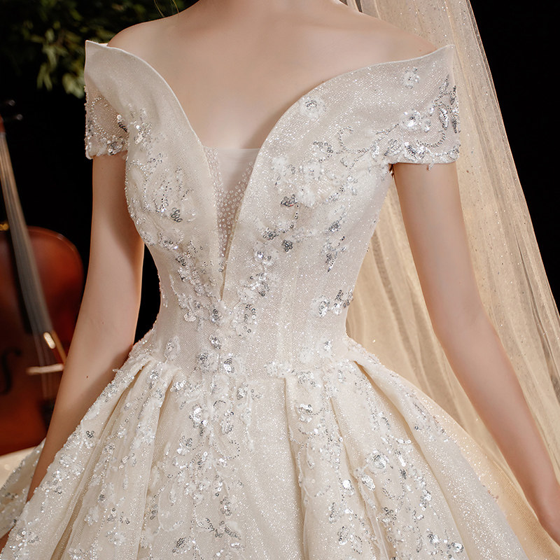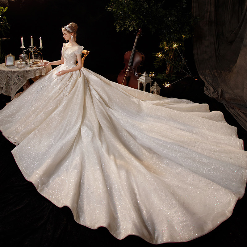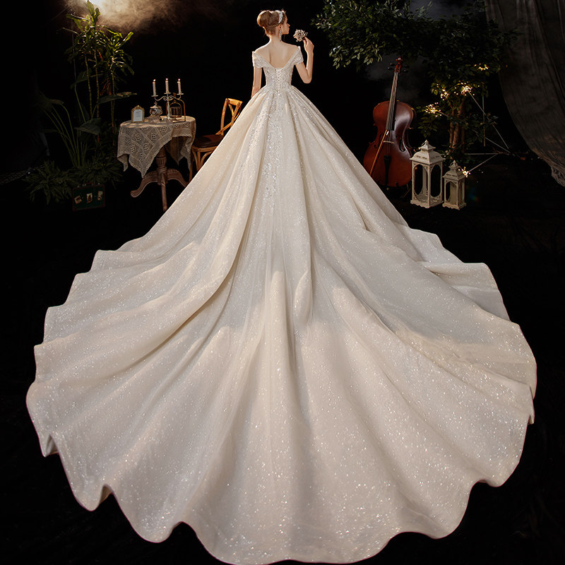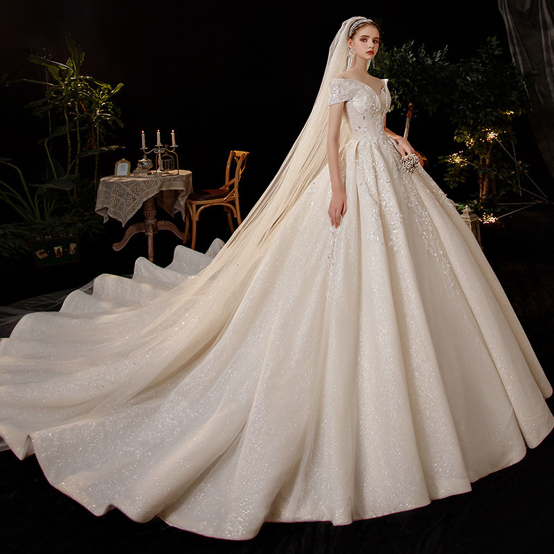 Word shoulder main wedding dress bride 2020 new temperament small man light French big tail 2021 actress empty