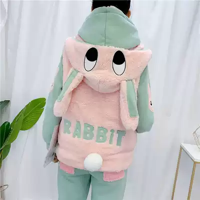 New autumn and winter clothes thickened plus velvet suit women's three-piece cartoon age-reducing cotton-padded clothes students have cute personality