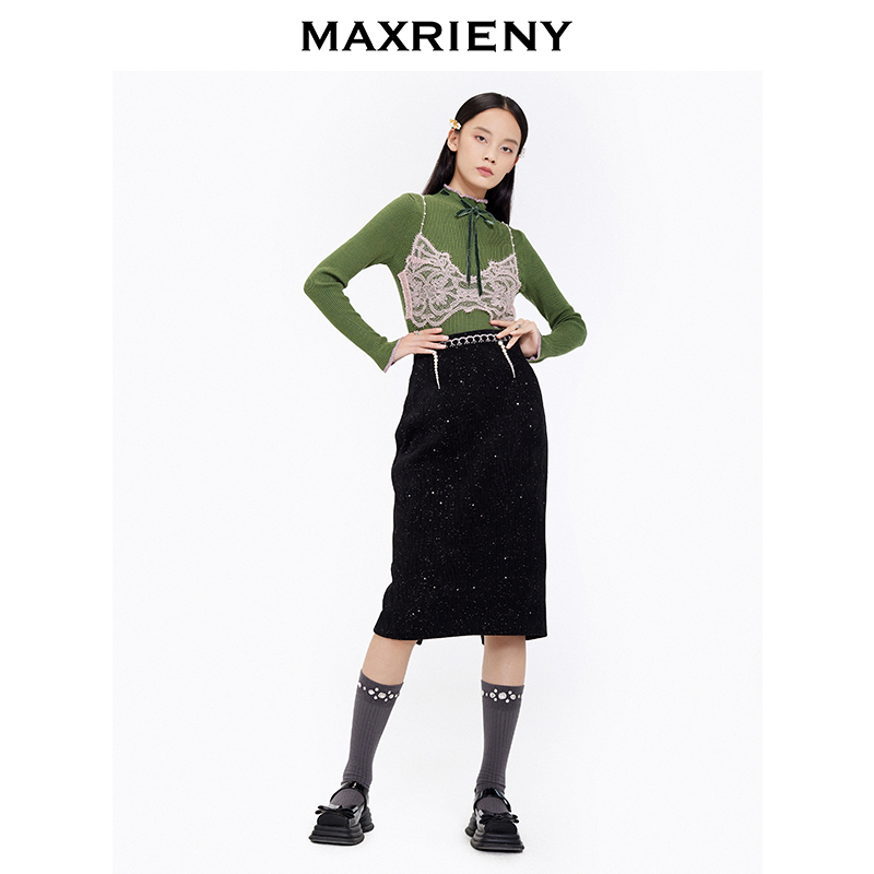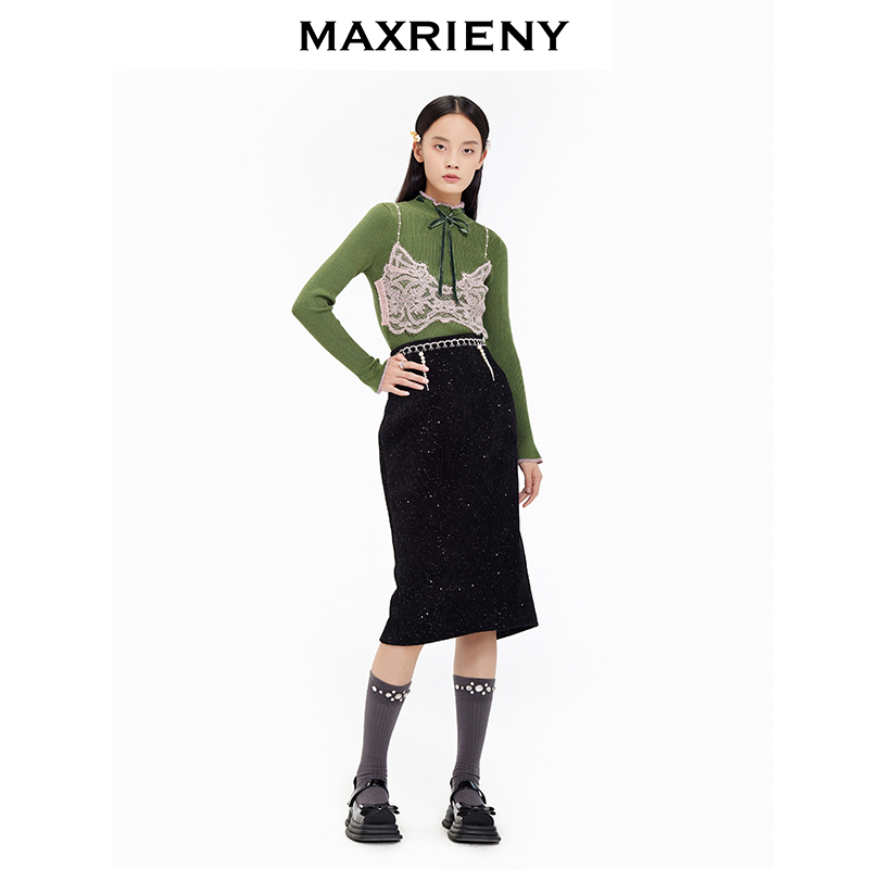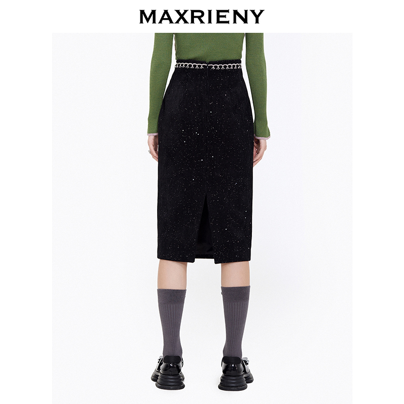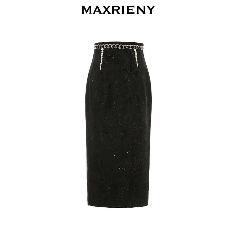 MAXRIENY winter new retro black slim high waist skirt Hepburn style midi skirt bag hip skirt women