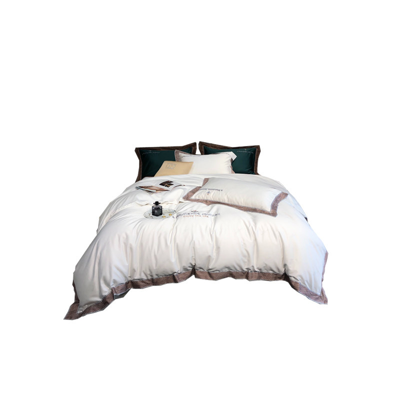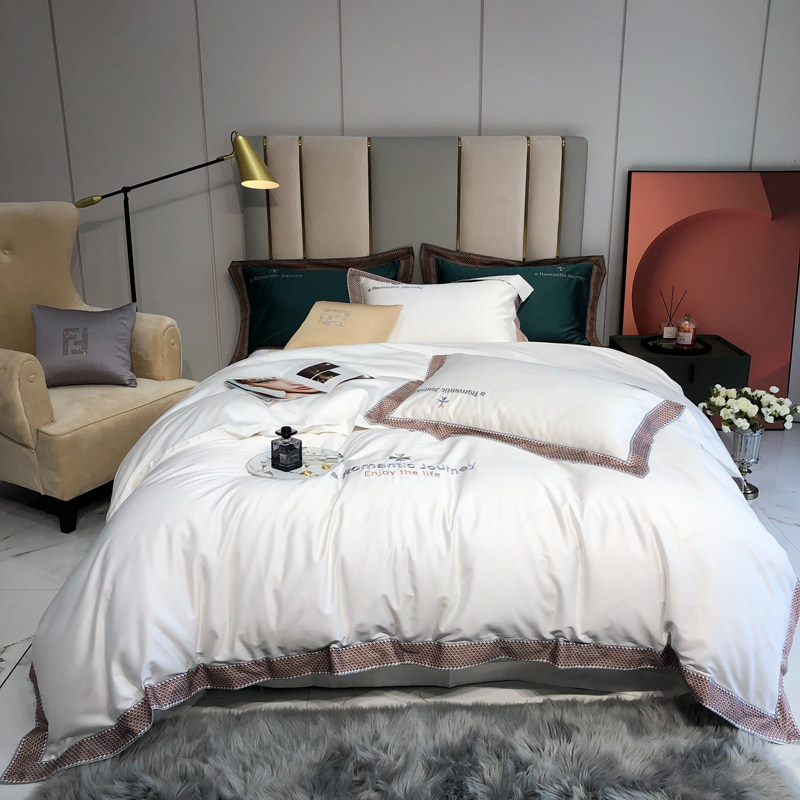 Simple and light luxury 100 double-strand Australian cotton cotton embroidery model room four-piece set of solid color naked sleep 1 8 bedding